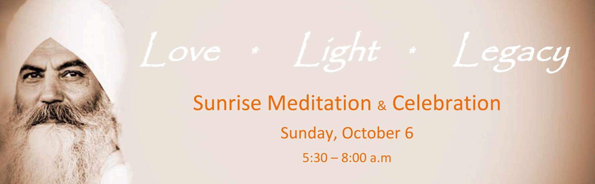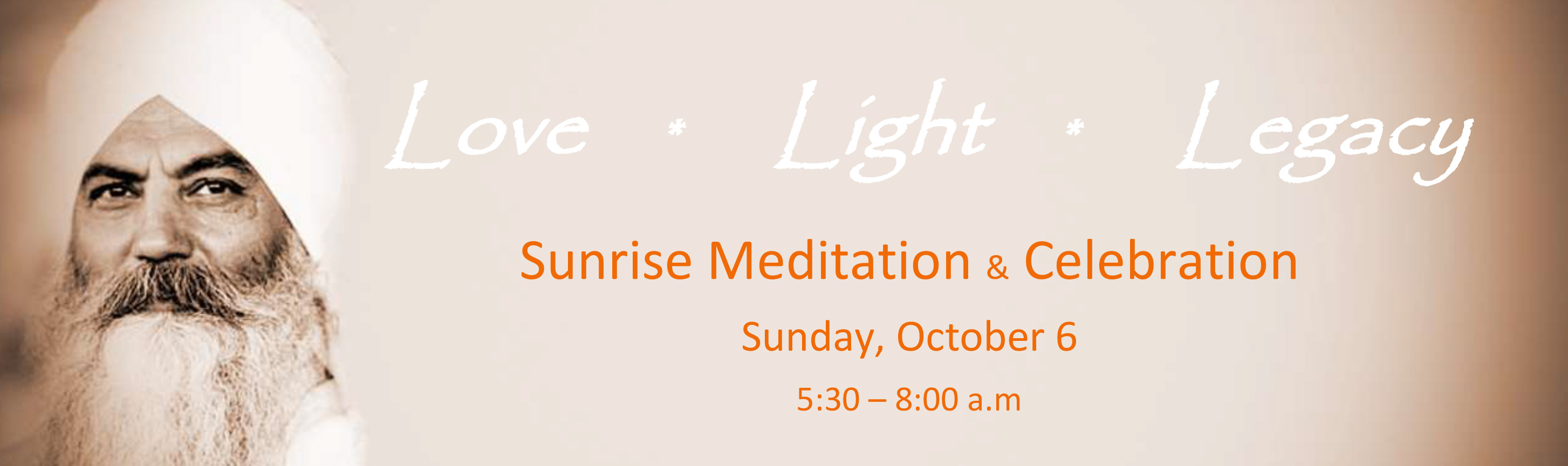 We hope you will join us for a simple, reverent, morning practice in celebration of Yogi Bhajan. After reciting Japji, and doing a brief yoga practice, we will chant Yogi Bhajan’s personal mantra, Guru Guru Wahe Guru, Guru Ram Das Guru for 31 minutes, as the sun rises.